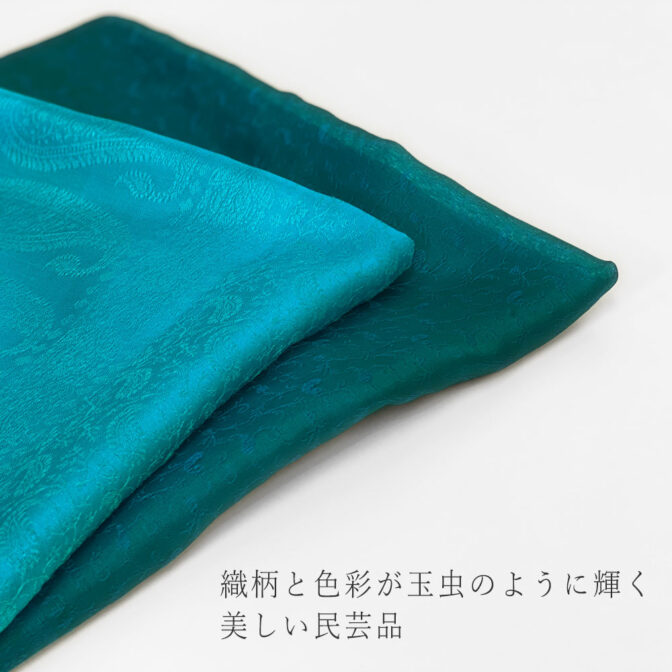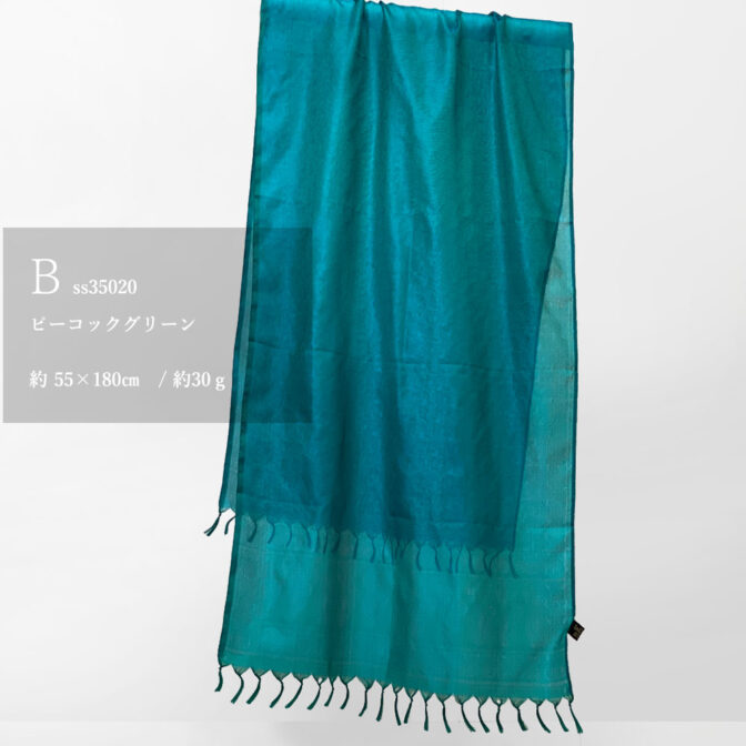 InDream ストール シルク スカーフ 手織り ペイズリー ブルー/グリーン ss005