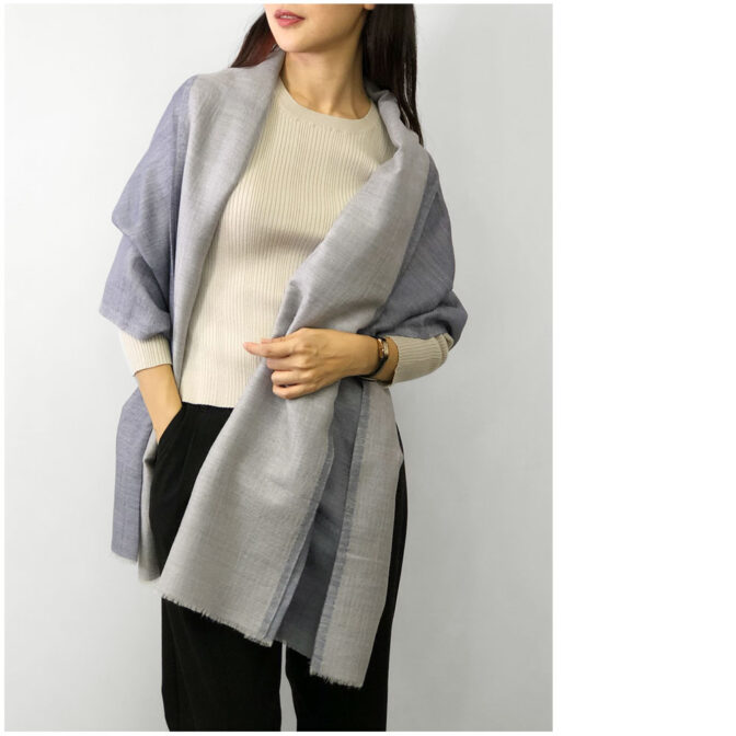 2色織りでリバーシブルでお使いいただけます。ウールとは信じられない、やわらかな触り心地はまるでカシミヤ!
